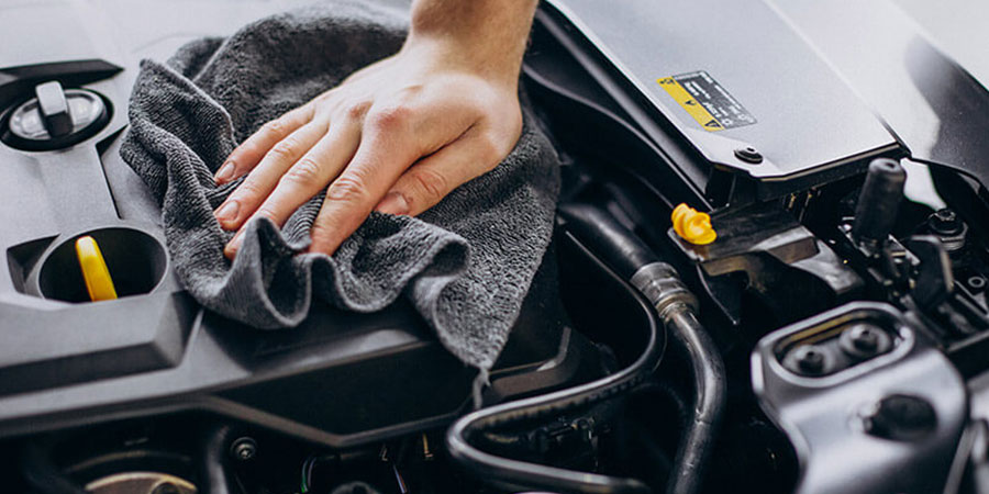 Limpeza segura do compartimento do motor, com produtos
